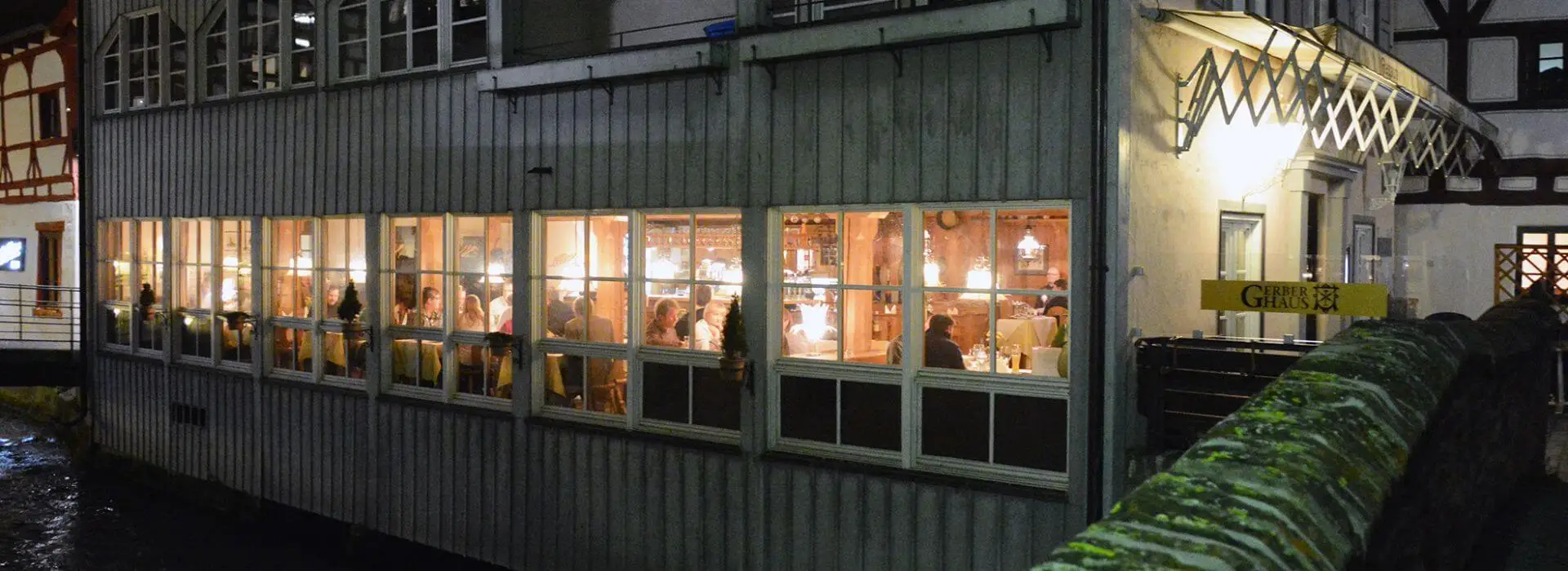 Blick auf die Fassade des Gerber Hauses von der Brücke aus